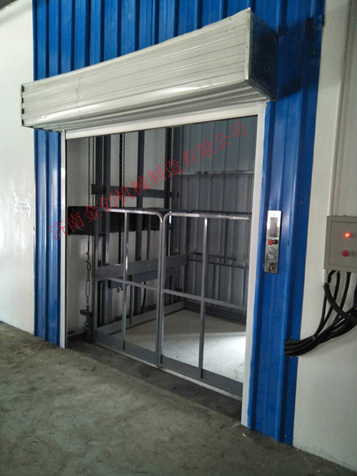 這臺(tái)在天津安裝完成的升高6米,載重3噸的鏈條導(dǎo)軌式液壓升降貨梯,采用電動(dòng)卷簾門(mén)聯(lián)動(dòng)控制,彩鋼板外封結(jié)構(gòu),結(jié)構(gòu)堅(jiān)固,承載量大,升降平穩(wěn),安裝維護(hù)簡(jiǎn)單方便,是經(jīng)濟(jì)實(shí)用的低樓層間替代電梯的理想貨物輸送設(shè)備.常常用于二三層工業(yè)廠房,餐廳,酒樓樓層間的貨物傳輸。鏈條式液壓升降貨梯最低高度在150-300mm,尤其適合不能開(kāi)挖地坑的工作場(chǎng)所.