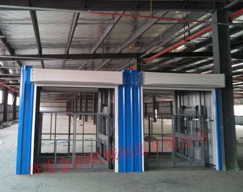 液壓升降貨梯廠家-濟(jì)南金創(chuàng)升降機(jī)械公司,生產(chǎn)的升高6米,載重3噸,彩鋼板外封結(jié)構(gòu)導(dǎo)軌鏈條式液壓升降貨梯在天津安裝完成.