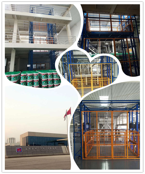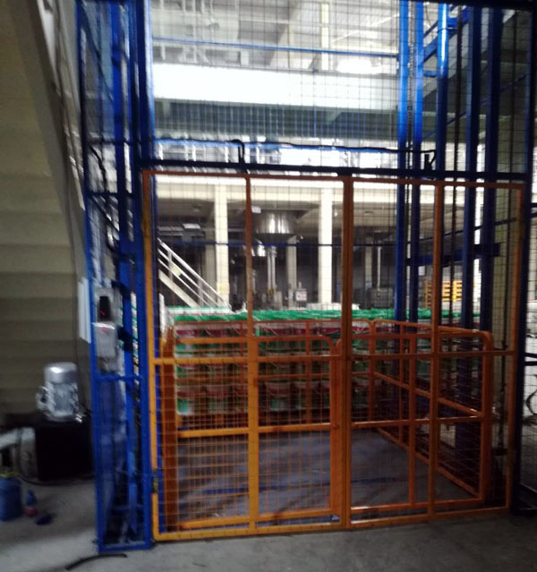 帶外防護(hù)導(dǎo)軌式液壓升降機(jī)在涂料廠安裝完成